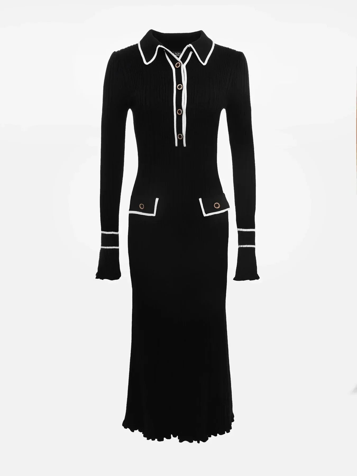 Step into sophistication with our stunning Parisian™-inspired piece, designed to bring elegance to your everyday style. Featuring a delicate fluted hem and impeccably flouncy sleeves, this dress embodies grace and charm. Crafted from our luxurious stretch-rib fabric, it offers unmatched comfort while maintaining a refined aesthetic. With thoughtful details like a contrast trim, a button placket, and stylish imitation pockets, this dress is perfect for those who appreciate the finer things in life.